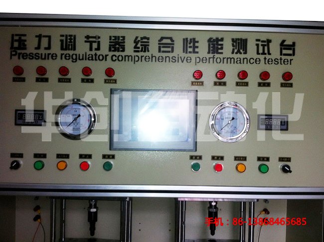 1,控制系統 采用華創公司自行研發的檢測臺專用控制HC3U系列PLC,觸摸屏。 2,采樣元件: 流量,壓力,電流電壓。 執行元件:電磁閥(SMC) 3,伺服精密調壓閥門由本公司自行開發的不銹鋼304精細閥門 |